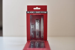 Includes a large toenail clipper, a small nail clipper, and a metal nail file