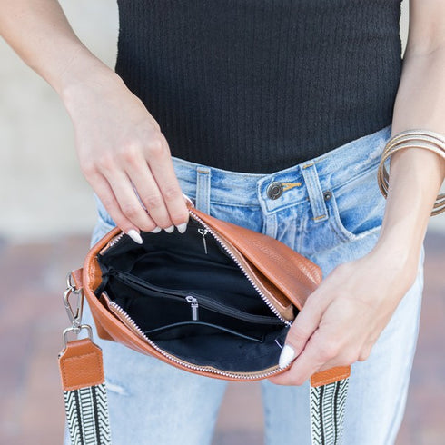 Inside, this Compact Crossbody bag you'll discover an easy-to-clean herringbone polyester lining that keeps everything nice and tidy wherever you go. With a tiny inside zip sidewall pocket and a convenient open sidewall pocket, you can keep your things organized and easily accessible. The internal center zip compartment of this leather croddbody bag for women is ideal for storing essential essentials. There’s an Adjustable Removable Guitar Strap that Measures 33.5" - 53" for a customizable fit while the silver hardware adds a touch of glamour.