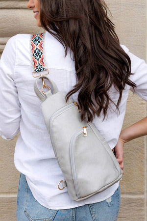 Introducing the Evie Everyday Sling Bag, the best sling bag for everyday carry for modern women. This beautiful bag, made of luxurious vegan leather with superior lining, has gold hardware and a distinctive patterned guitar strap for an added touch of sophistication. The top handle has a 2.75" drop and the bag has plenty of storage with two main outside zipper compartments, a concealed rear external zipper compartment, and an exterior side pocket. Inside, you'll discover an extra zipper pocket and two open sidewall pockets to keep you organized on the road. The Evie Everyday Sling Bag is the best sling bag for everyday carry, offering a perfect blend of style, practicality, and high-end quality.