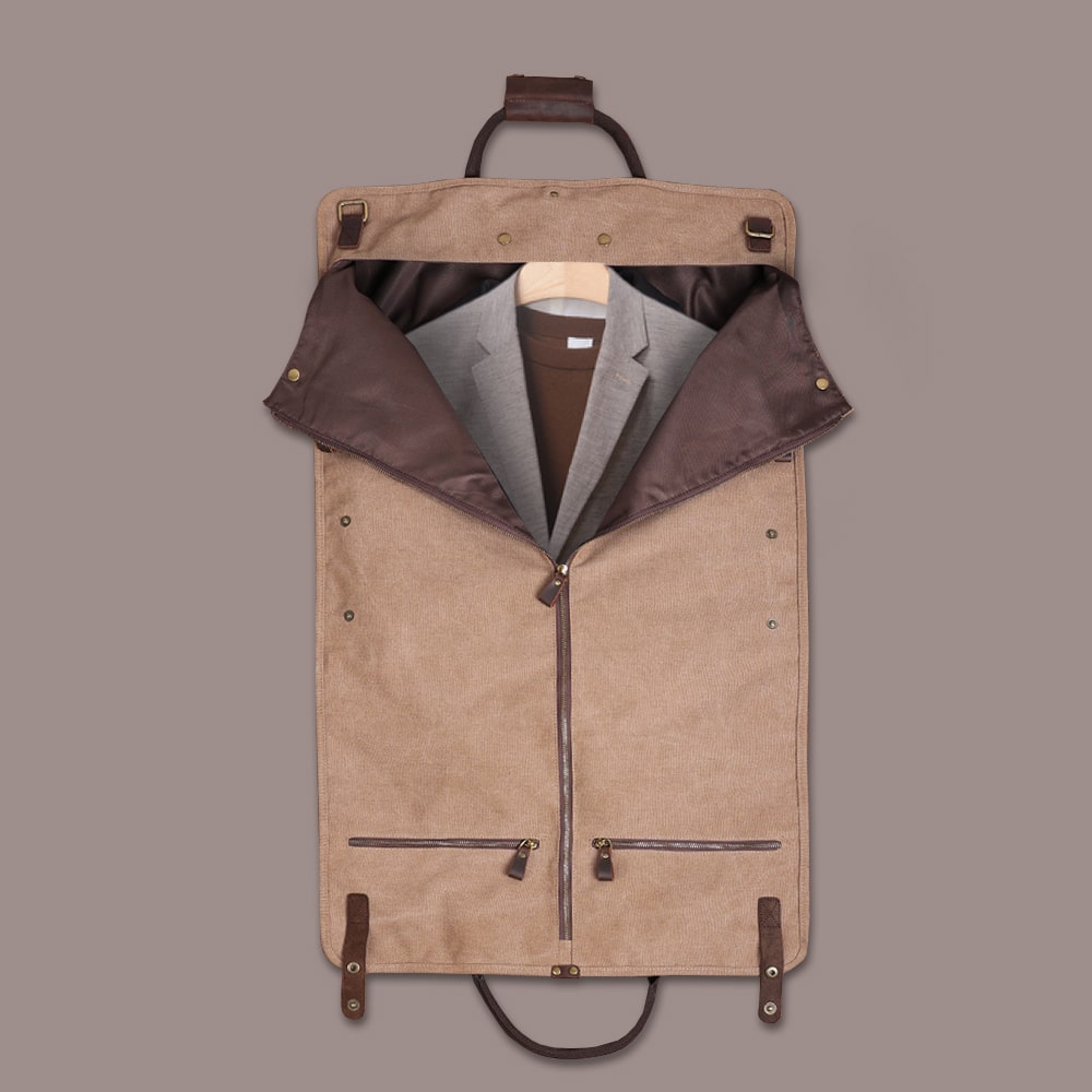 Be the trendsetter of your adventures with the Voyage Convertible Garment Bag. With its sleek design and high-quality canvas, you'll turn heads wherever you go. This convertible suit bag combines the features of a garment bag and a travel duffle bag. It is a perfect choice for business trips, weddings, and weekend getaways, providing ample space for clothes and accessories while keeping them organized. It minimizes the need for multiple bags and effortlessly transforms into a duffle bag for any travel occasion.
